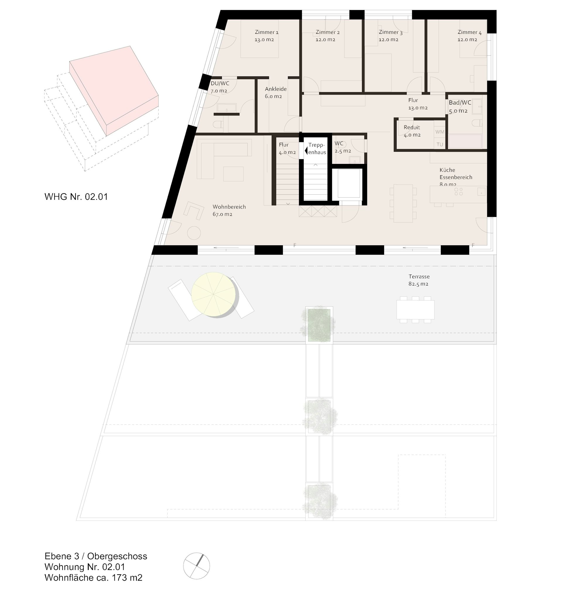 Die Grundrisse sind praktisch und ebenso grosszügig konzipiert und bieten Raum für die Entfaltung Ihrer Bedürfnisse. Die Terrassen bei allen Einheiten runden das Angebot ab.